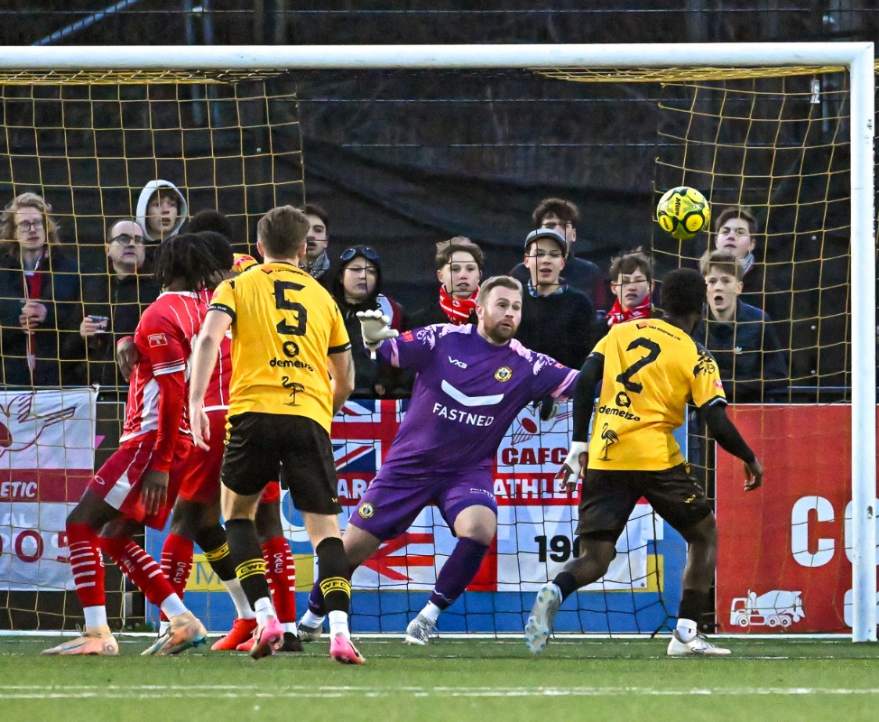 Going into the final stages Carshalton looked to go back in front and from a Saraiva corner from the left to the far post Salami put a header wide. Shortly after, substitute Tolu Ladapo down the left of the area fired in a shot that was comfortably saved at the near post by Seaden.