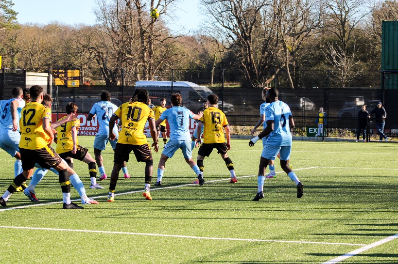 On a lovely and warm March afternoon the game began with Potters Bar perhaps having their best spell of the match and in the second minute, Joe Re saw a shot blocked and then Nana Kyei cut inside from the right and fired a shot into the arms of Harry Seaden.