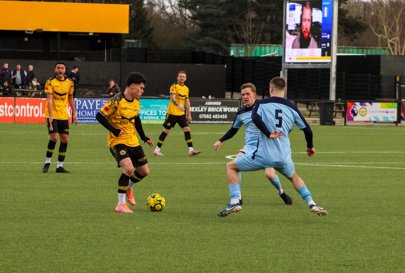 Cray went two up four minutes later as Ola Ogunwamide notched his first goal for Cray converting Frankie Raymond’s pass. The scoring was completed on the stroke of half time as Max Fiddes, himself on fourteen goals for the season converted Jordy Mongoy’s cross for his third goal for Cray. This made it the third time this year that Cray had a lead of three goals or more at half time. The second half even offered threat but it was a case of Harry Seaden and the back four producing a master class of defending against a strong direct side to complete the first clean sheet of 2026. As per usual Quade Taylor stepped in to join Tom Bonner at the back and from back to front it was a professional performance.