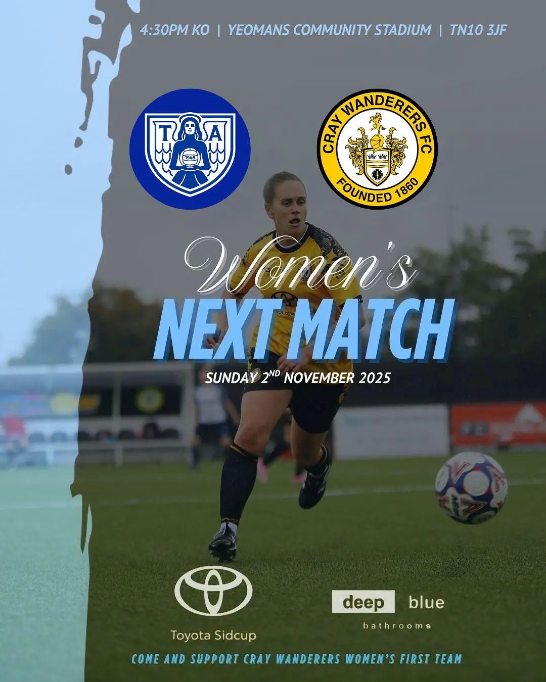 Cray Wanderers Women return to league action this afternoon after last Sunday’s rest with a huge game as the Wands head to Tonbridge Angels in a top of the table clash between two of three unbeaten teams in the SECWFL Premier. Kick off 4.30 pm.